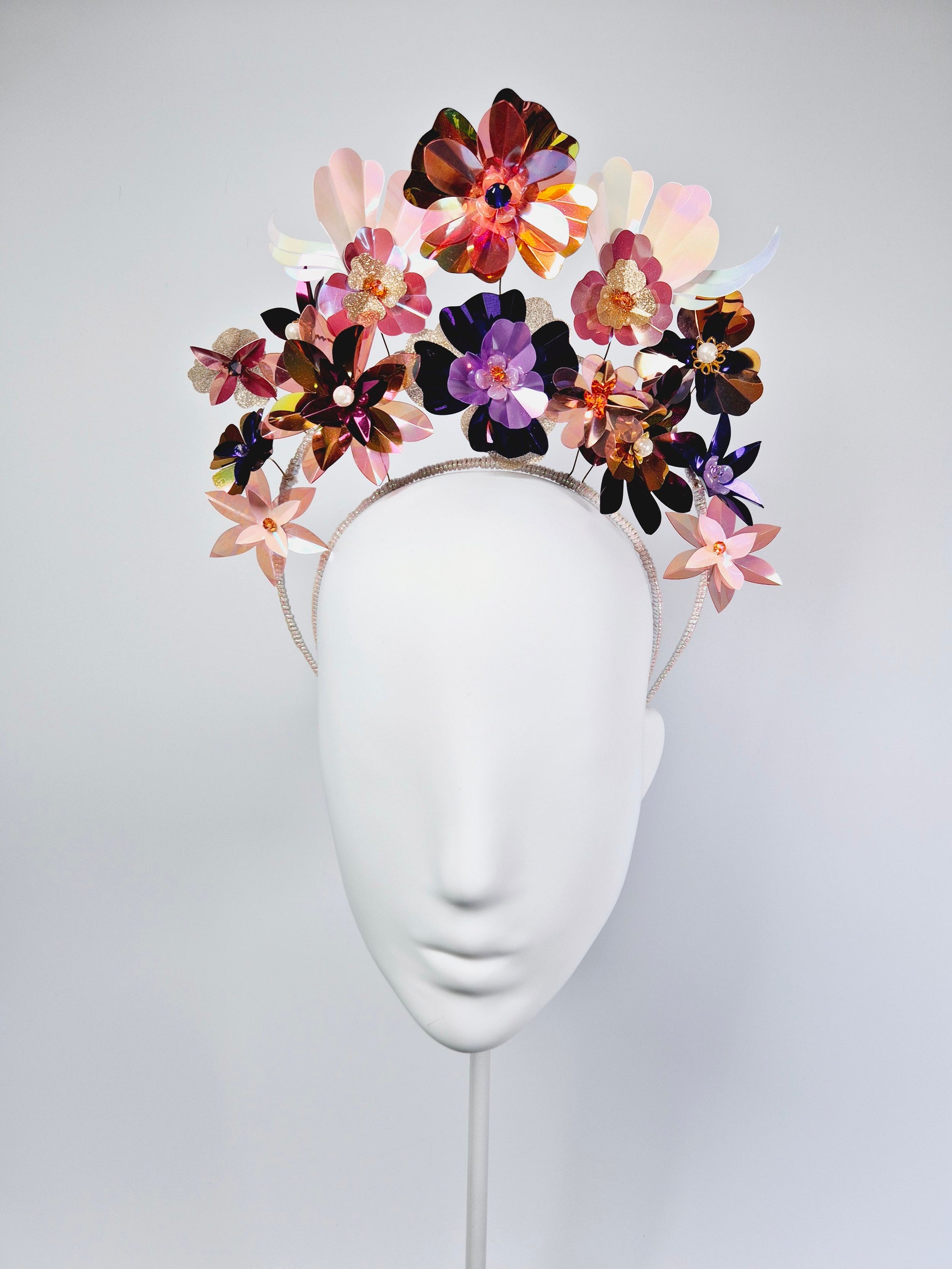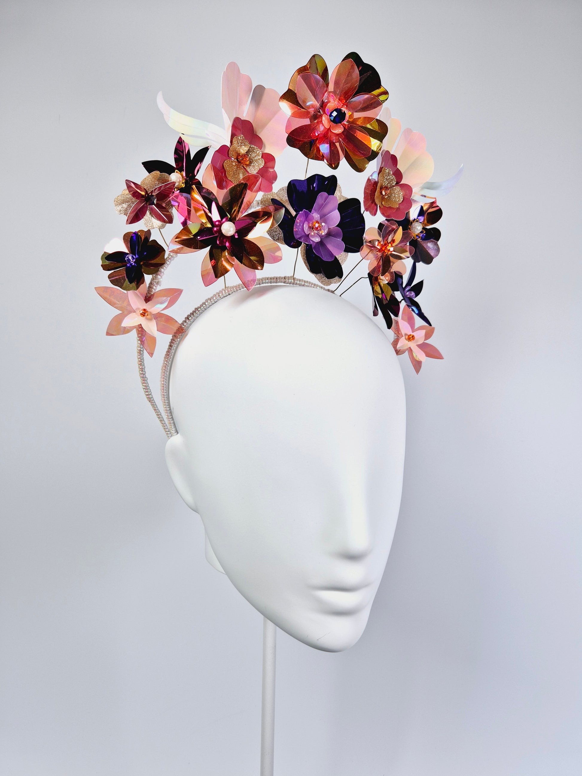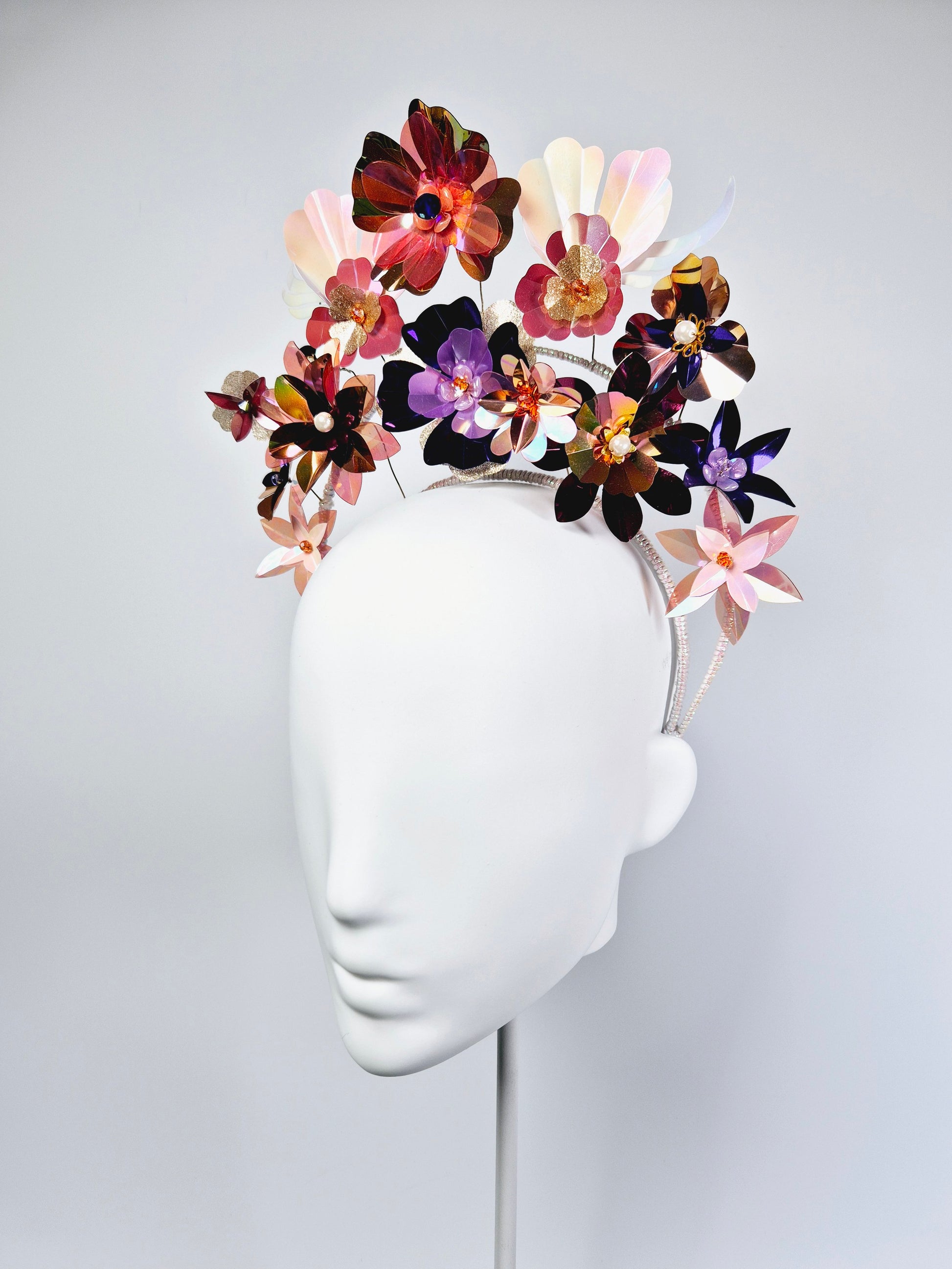 We love this floral crown. It bursts with colour. Their bright and shiny surfaces reflect the light in the most mesmerising way.It is lightweight and effortless foil flowers, making it the perfect accessory for the festival season.